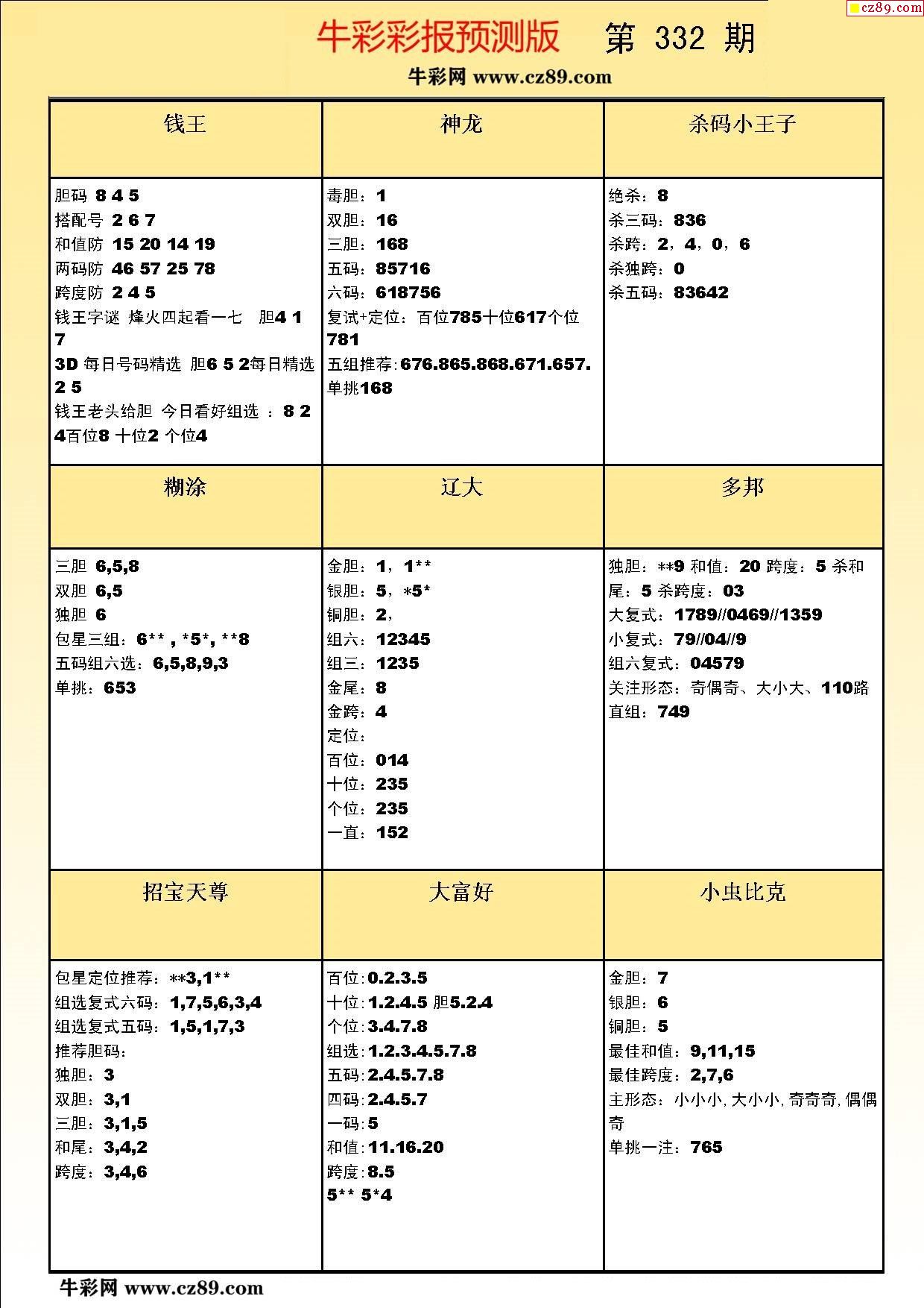 牛彩版3D预测彩报图22年332期打印版