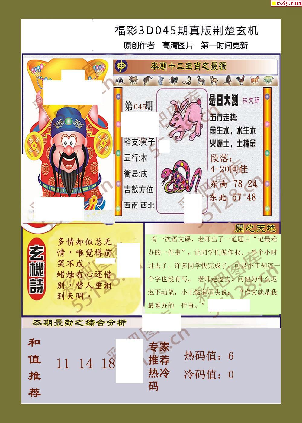 2023福彩3d045期真版荆楚玄机彩报