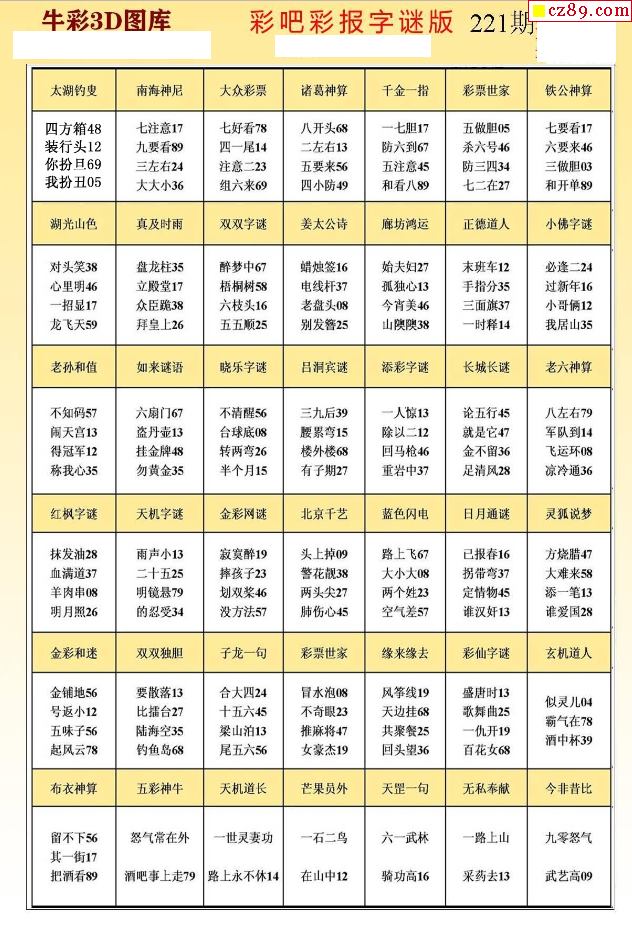 牛彩版3D字谜彩报图23年221期打印版