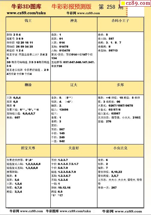 牛彩版3D预测彩报图23年258期打印版
