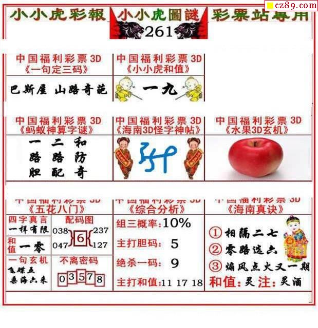 小小虎彩报2023261期3d图谜