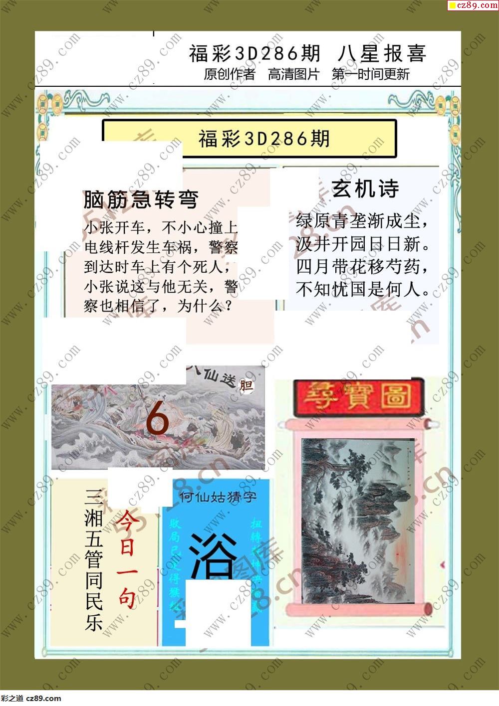 八星报喜23年286期福彩3d画谜