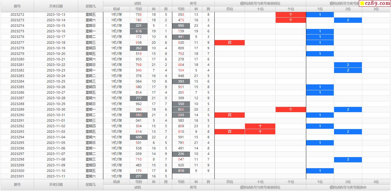 千禧3D试机号23年301期:277关注数532金码5试机号对应码:[358]