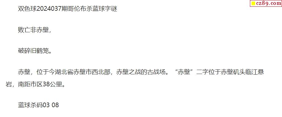24年福彩双色球037期 哥伦布一句杀蓝球字谜