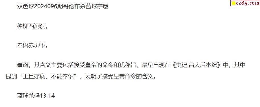 24年福彩双色球096期 哥伦布一句杀蓝球字谜
