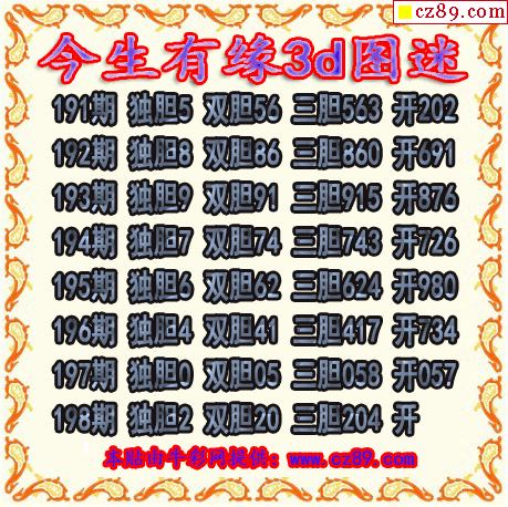 今生有缘三胆2025198期3d图谜(原创)