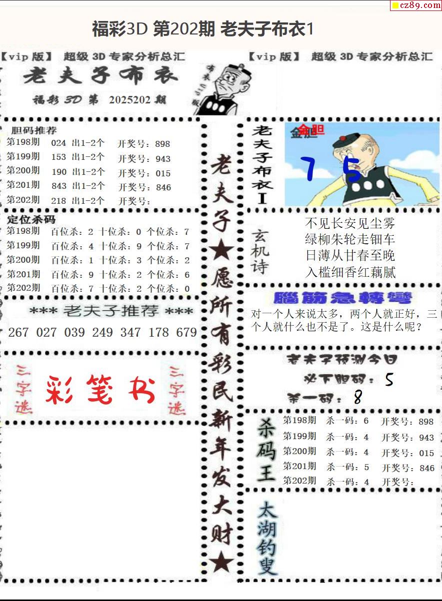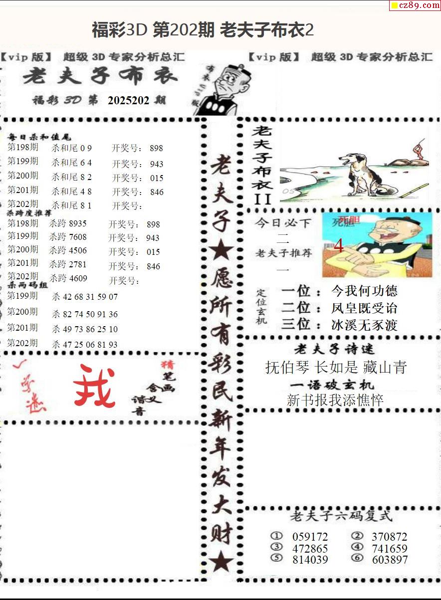 老夫子布衣2025202期3d图谜