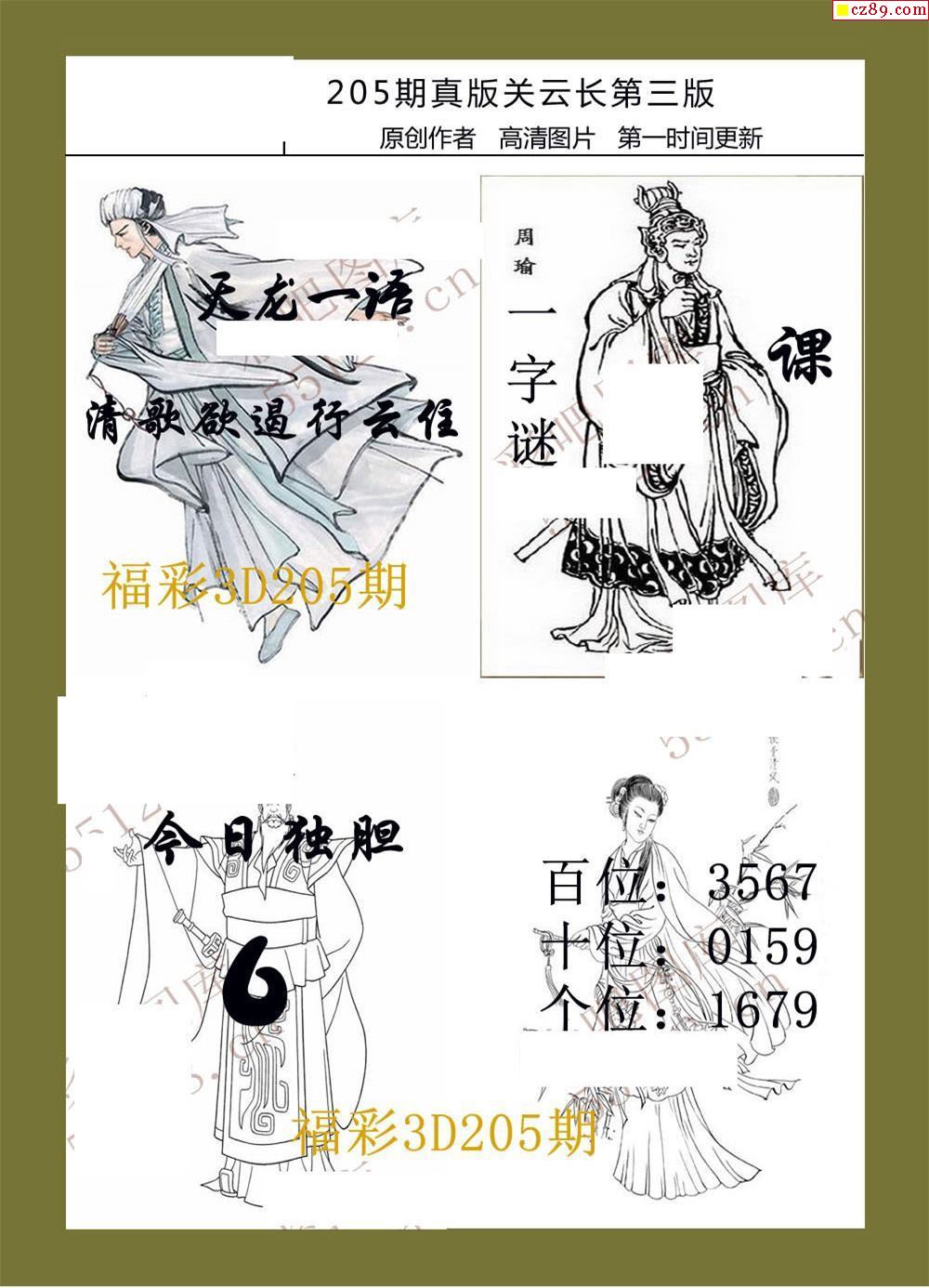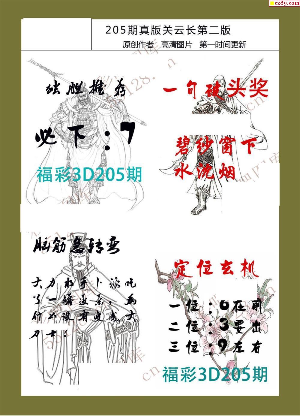 25年205期福彩3d真版关云长图谜