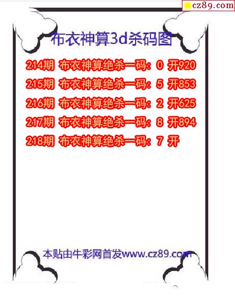 牛彩狙击手杀码2025328期3d图谜(原创)