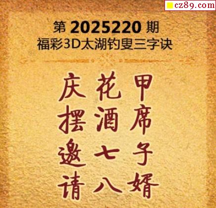 25年220期3d字谜太湖钓叟三字诀《保真》