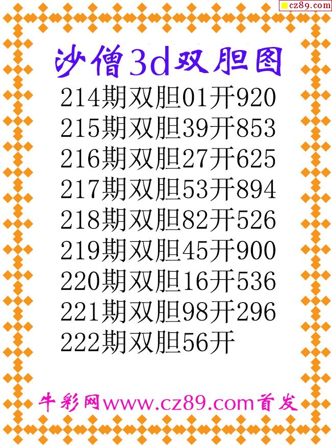 沙僧双胆25222期3d原创图谜