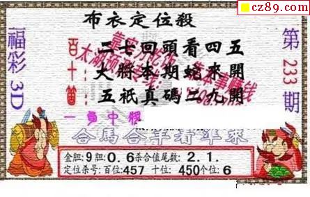 新禧布衣神算2025233期3d图谜