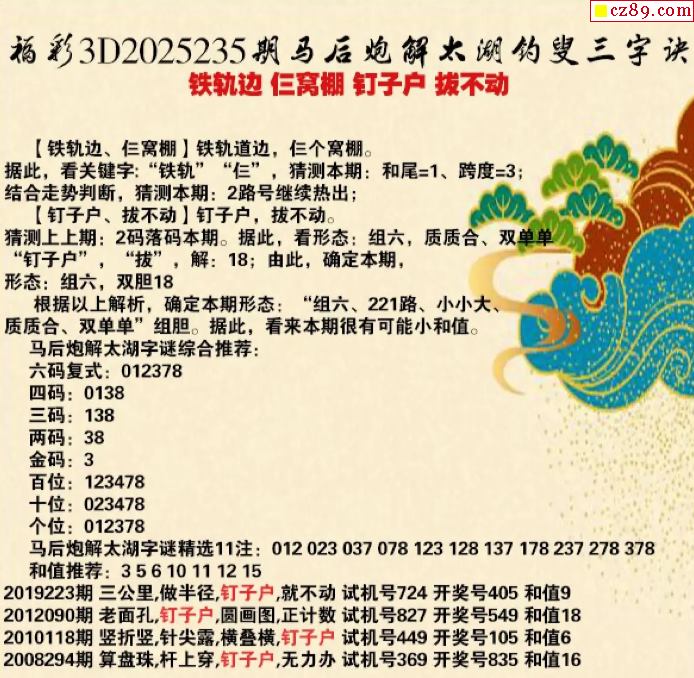 25年325期村姑萃解3D胆谜太湖一语定胆字...