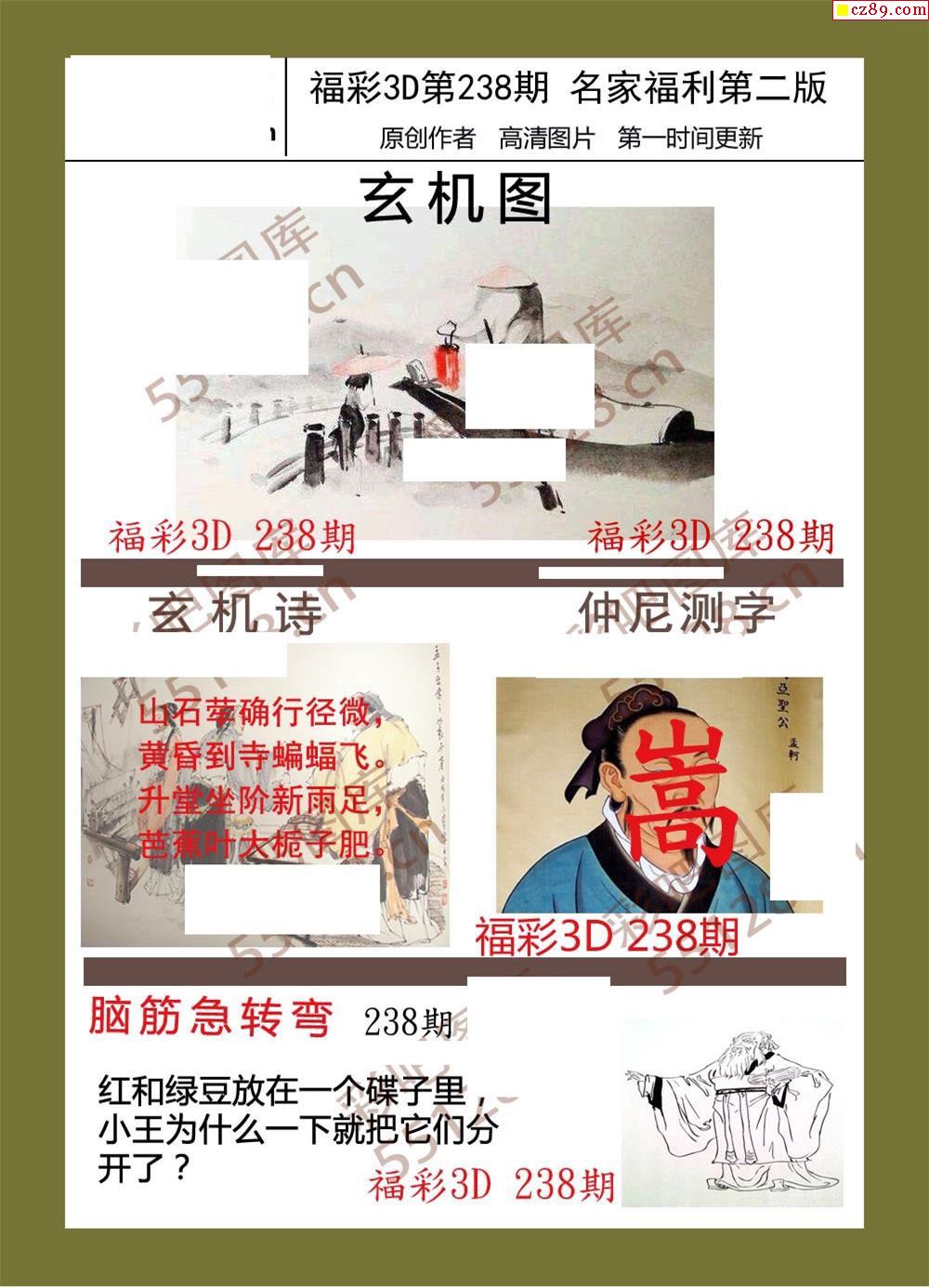 福彩名家福利彩票3d25年238期图谜
