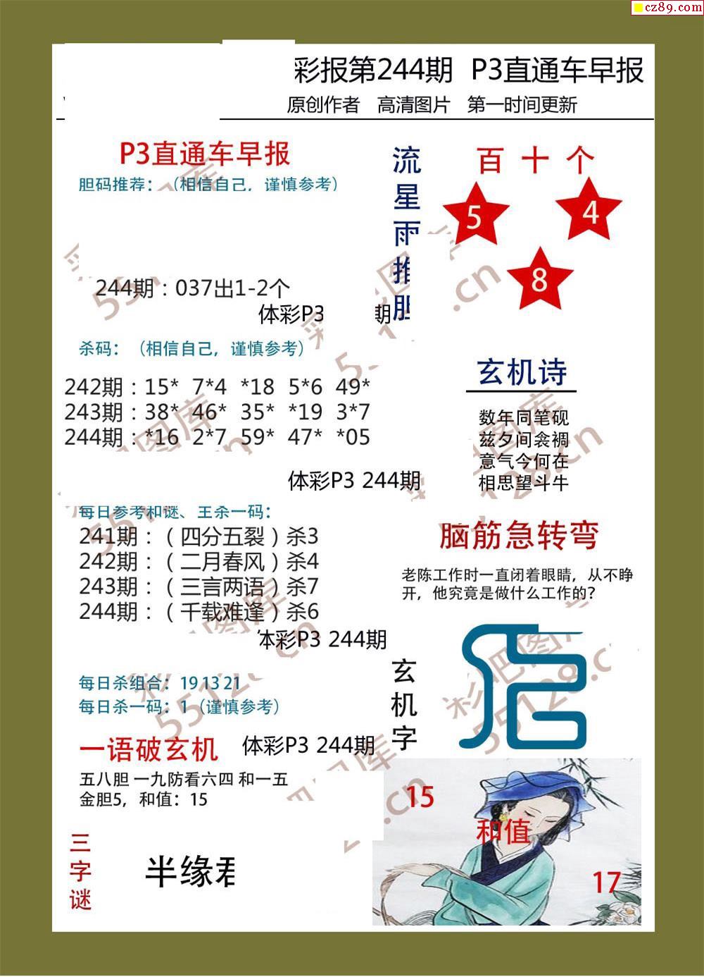 2025年327期牛彩网体彩P3画迷图谜汇总分享