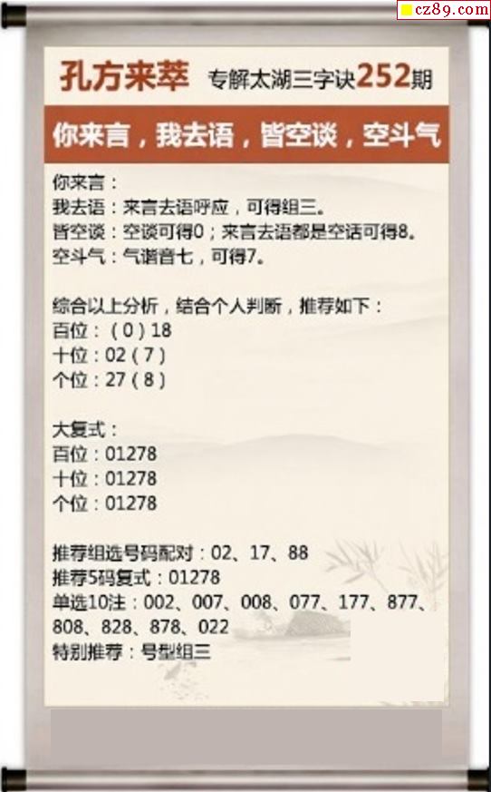 25年252期3d字谜太湖钓叟三字诀《保真》