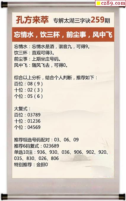 25年259期3d字谜太湖钓叟三字诀《保真》