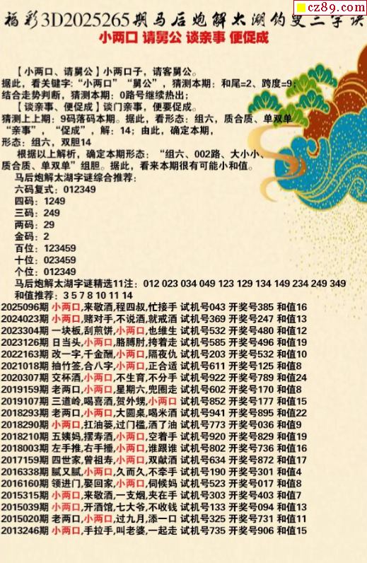 25年325期村姑萃解3D胆谜太湖一语定胆字...