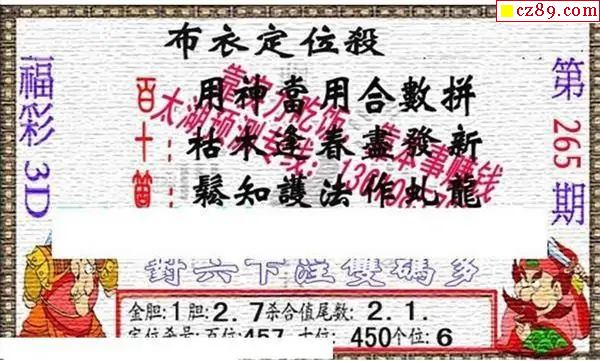 新禧布衣神算2025265期3d图谜