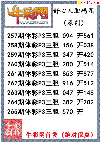 神彩飞扬三胆265期体彩P3图谜(原创)