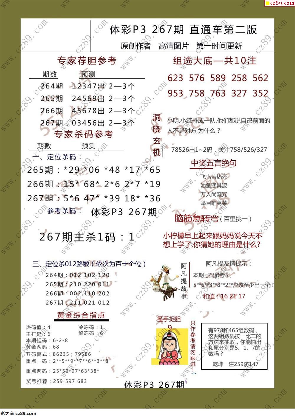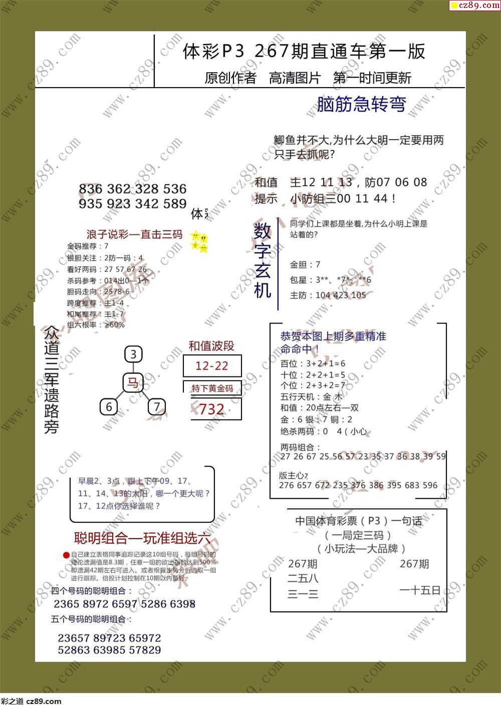 2025年267期牛彩网体彩P3画迷图谜汇总分享
