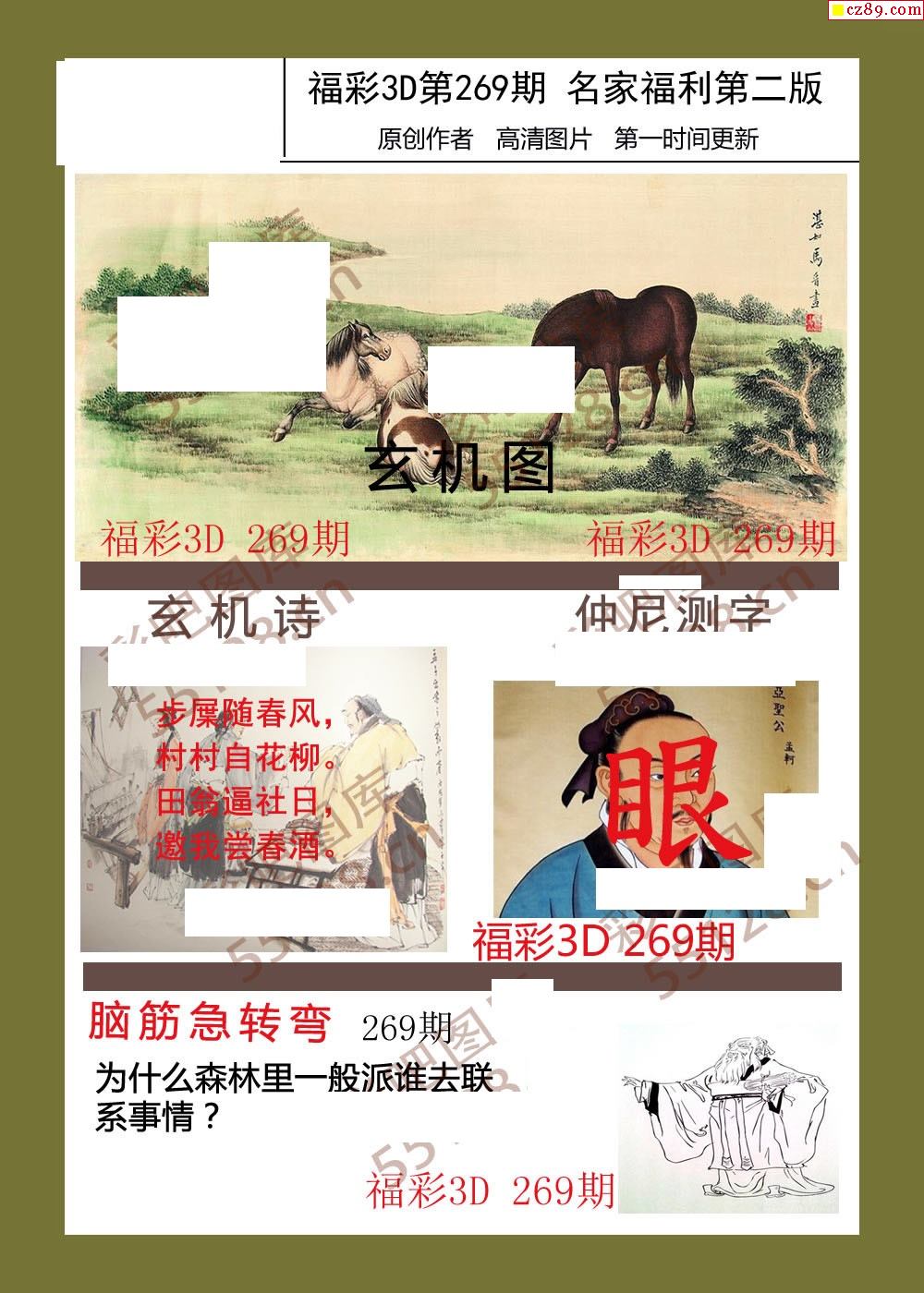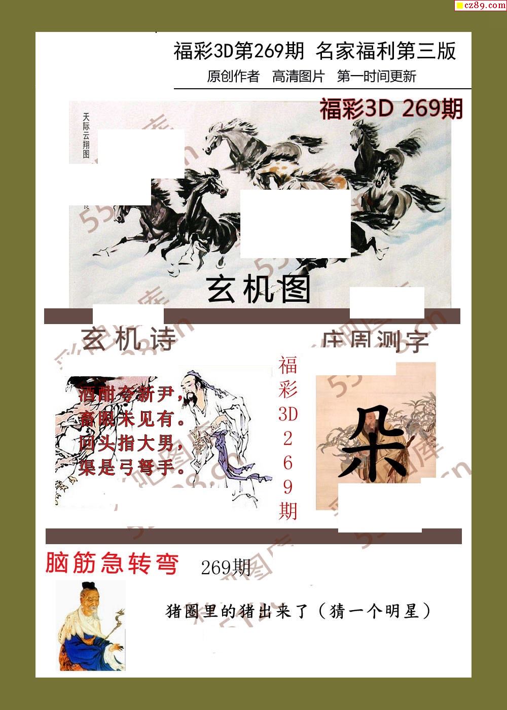 福彩名家福利彩票3d25年269图谜