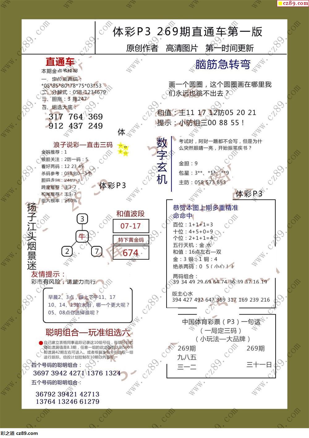 牛彩P3布衣25年327期AB版图谜(精华版)