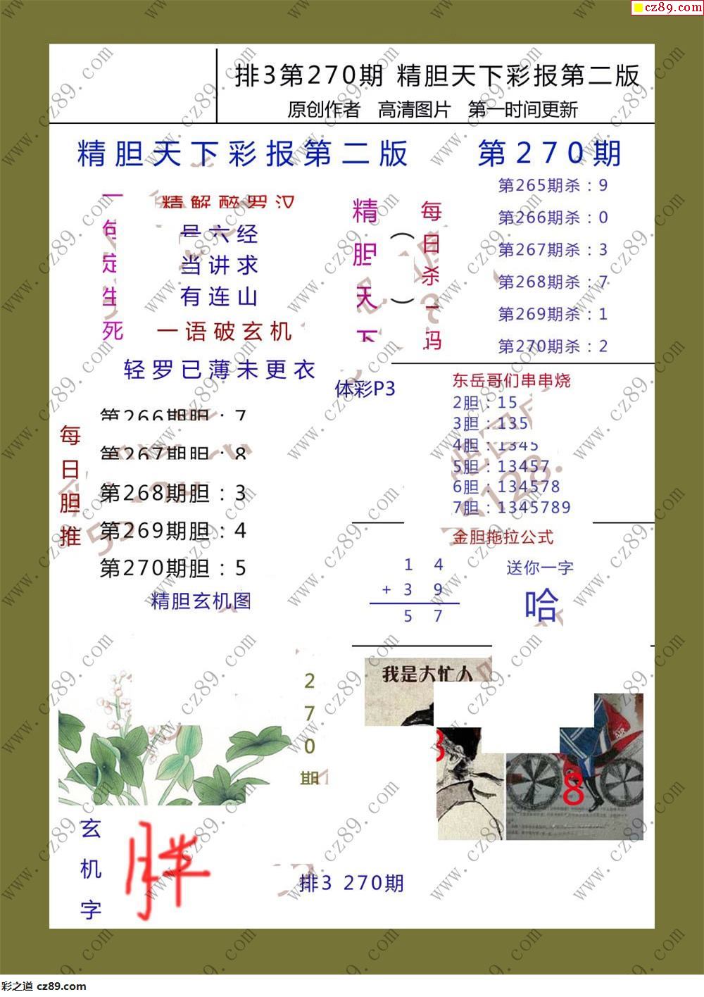 精胆天下彩报270期体彩p3图谜
