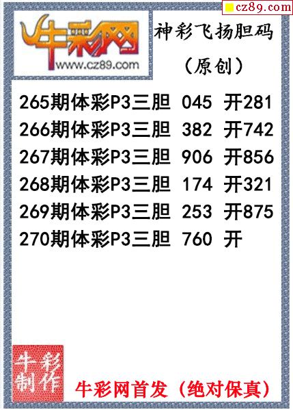 神彩飞扬三胆270期体彩P3图谜(原创)