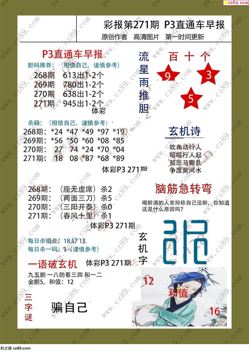 2025年328期牛彩网体彩P3画迷图谜汇总分享