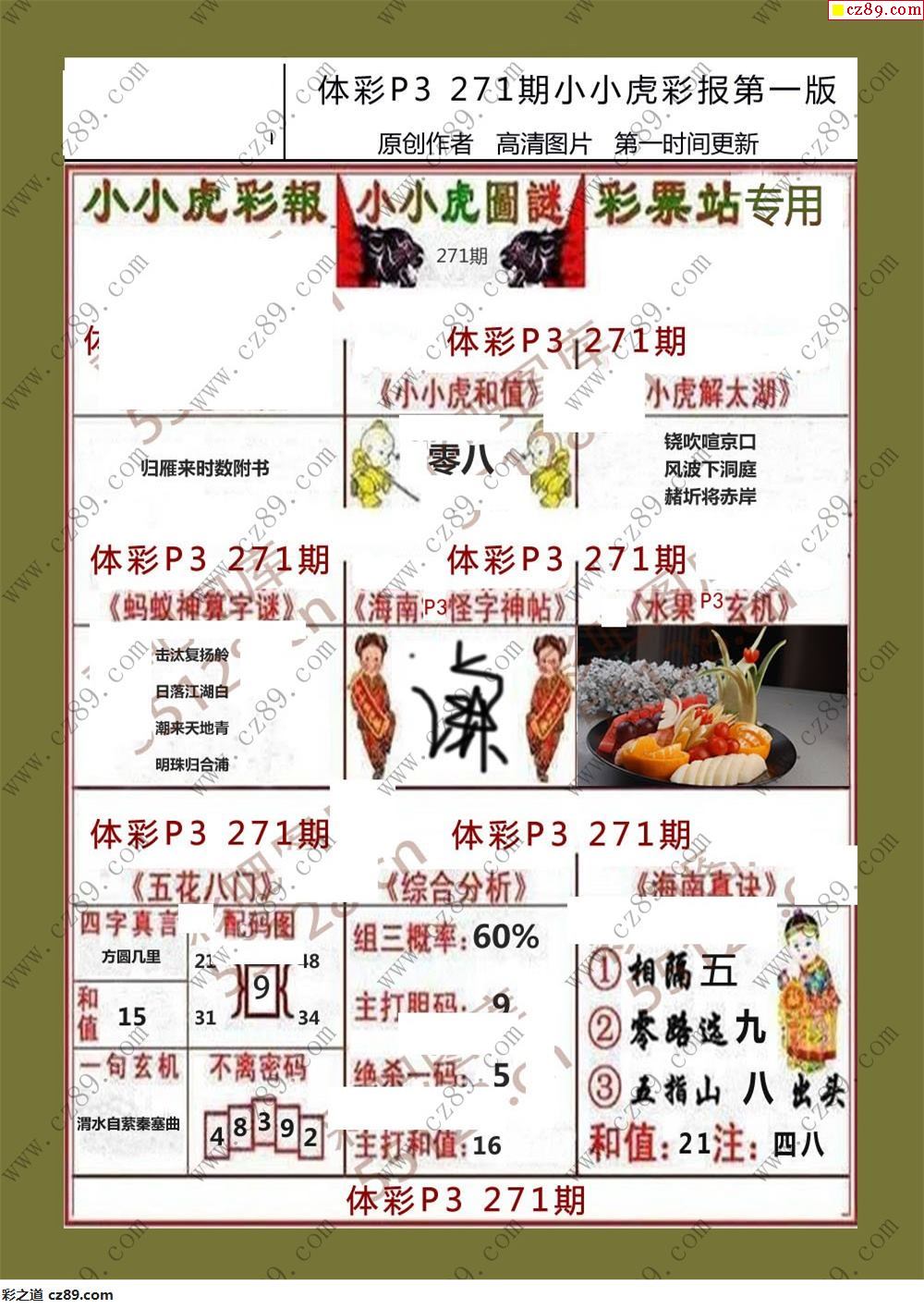 2025年271期牛彩网体彩P3画迷图谜汇总分享