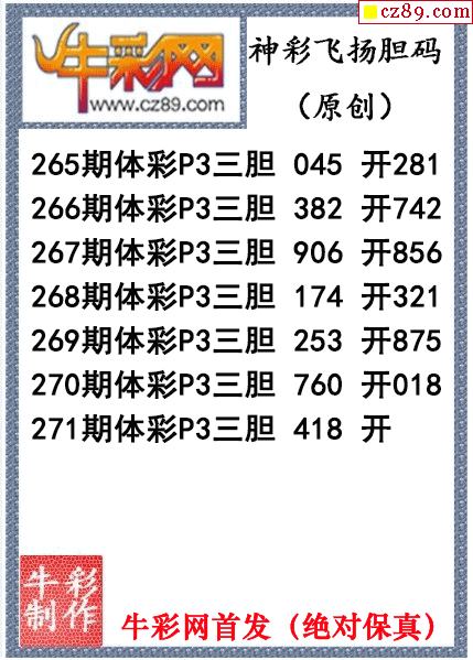 神彩飞扬三胆271期体彩P3图谜(原创)
