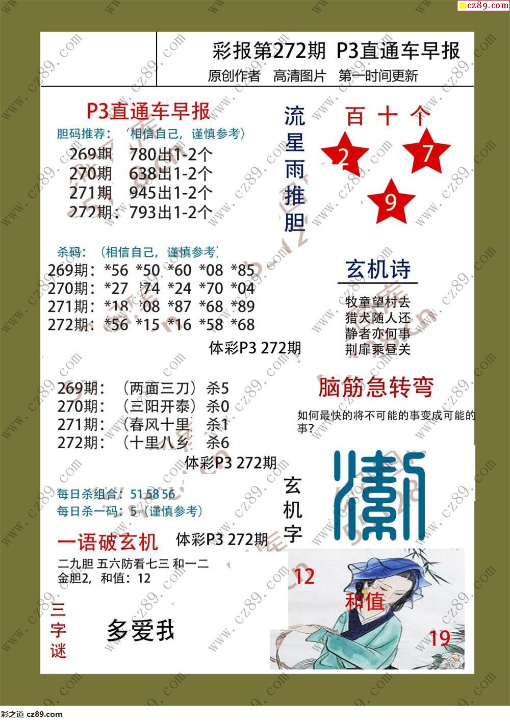 直通车早版272期体彩p3图谜