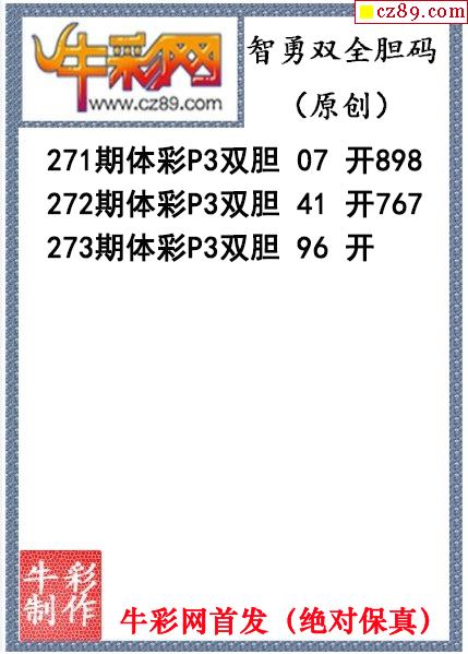 神彩飞扬三胆273期体彩P3图谜(原创)