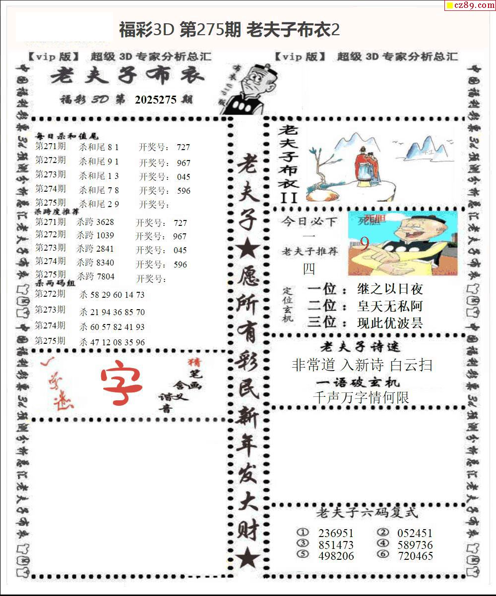 老夫子布衣20252753d图谜