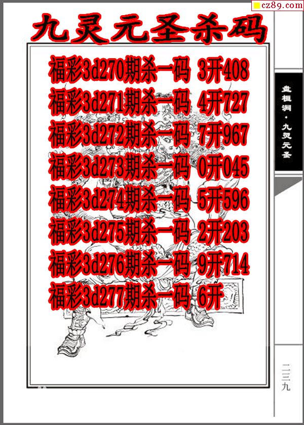 九灵元圣杀码2025277期3d图谜(原创)