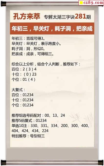 25年281期3d字谜太湖钓叟三字诀《保真》