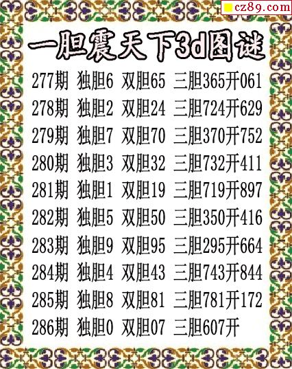 一胆震天下独胆2025286期3d图谜(原创)