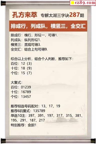 马后炮解25年287期3d太湖钓叟之 排成行