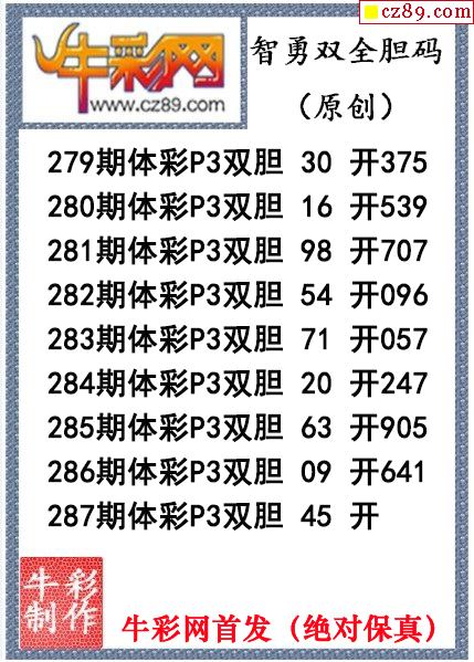 神彩飞扬三胆287期体彩P3图谜(原创)