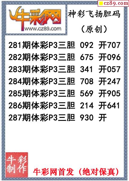 神彩飞扬三胆287期体彩P3图谜(原创)