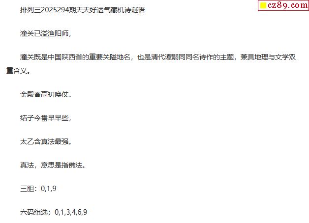 2025年藏机图294期 正版体彩P3藏机图诗汇总