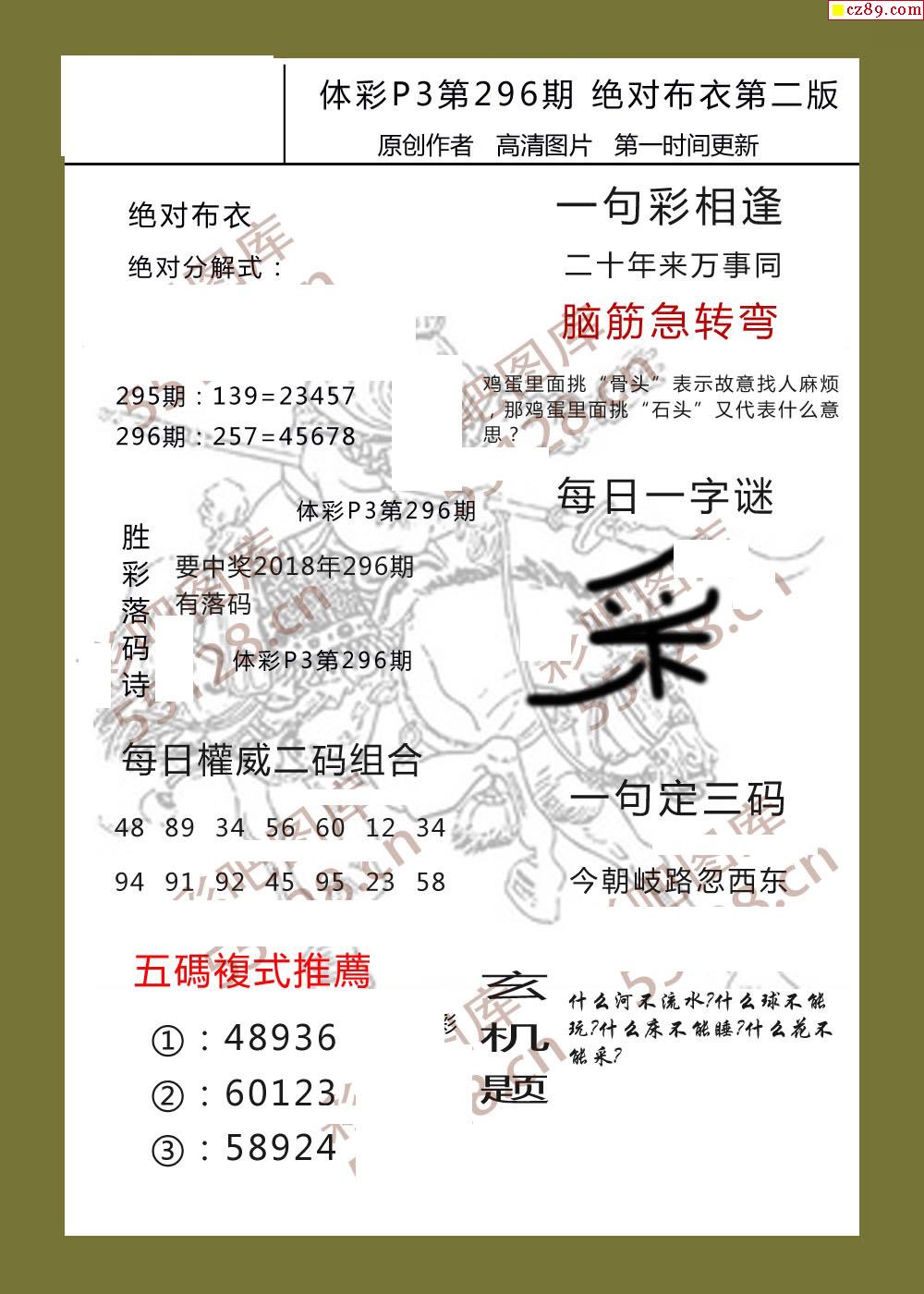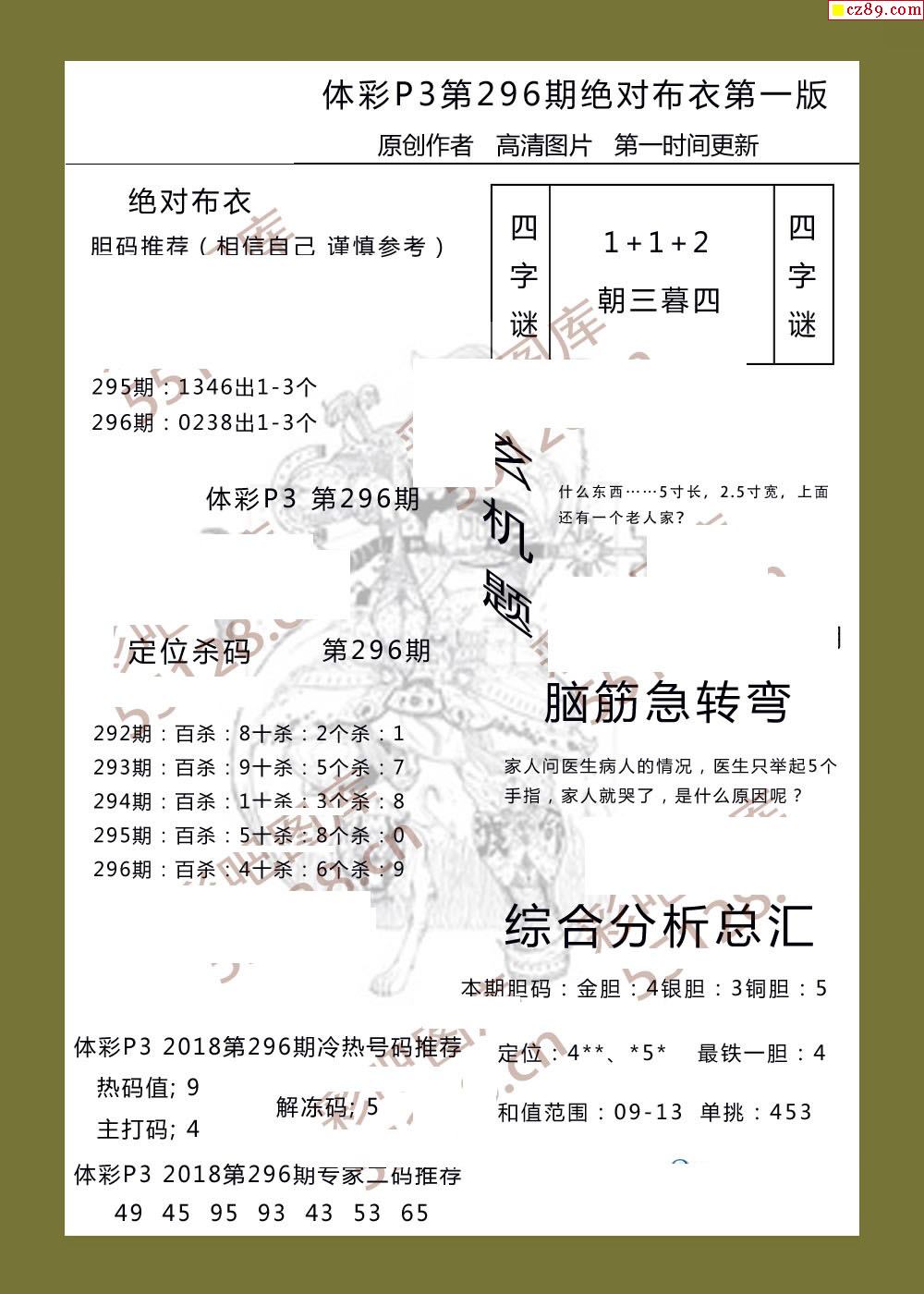 精华布衣彩报296期体彩p3图谜