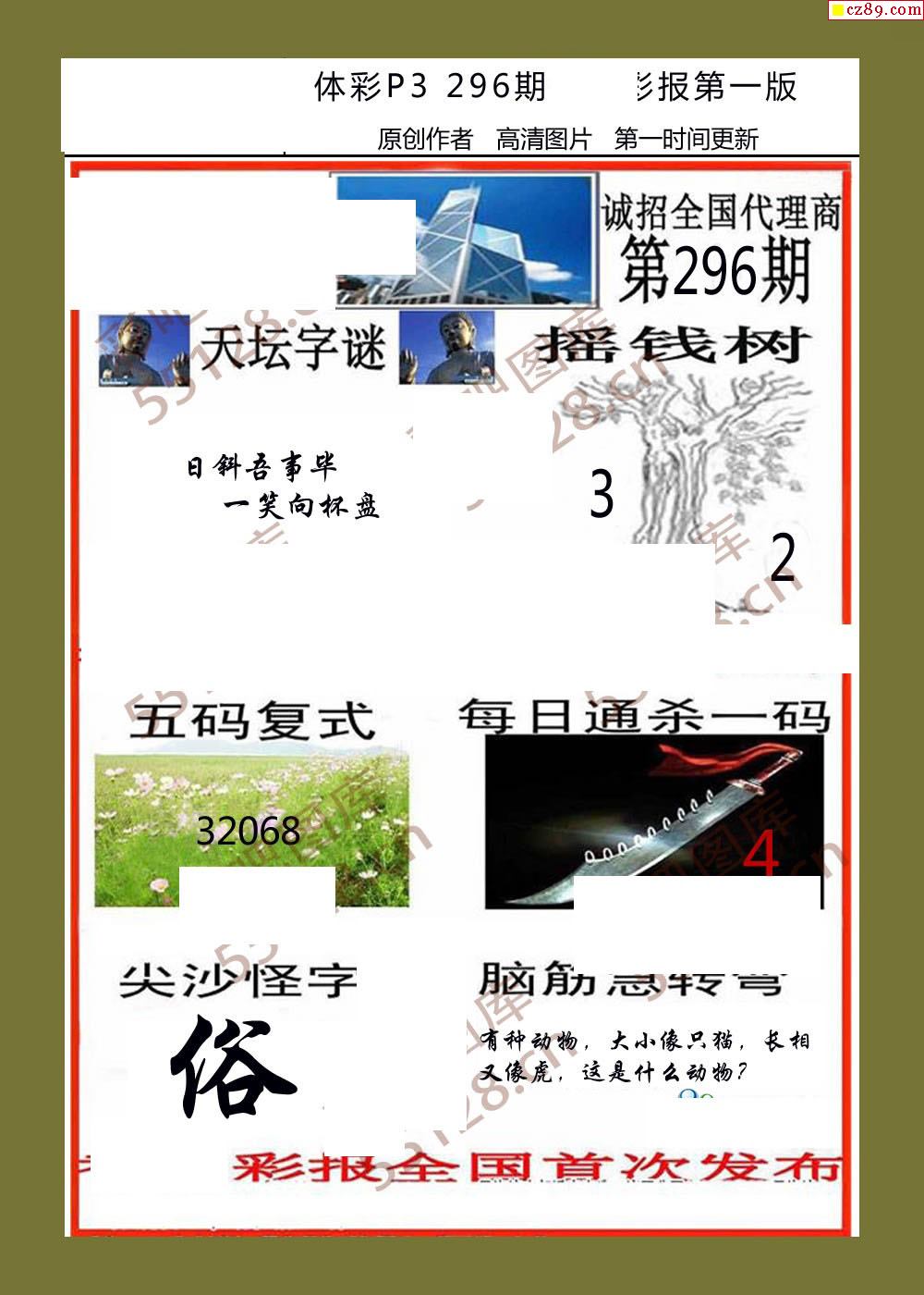 2025年325期牛彩网体彩P3画迷图谜汇总分享