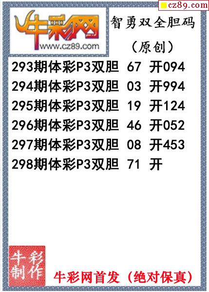 智勇双全双胆298期今日P3图迷(原创)