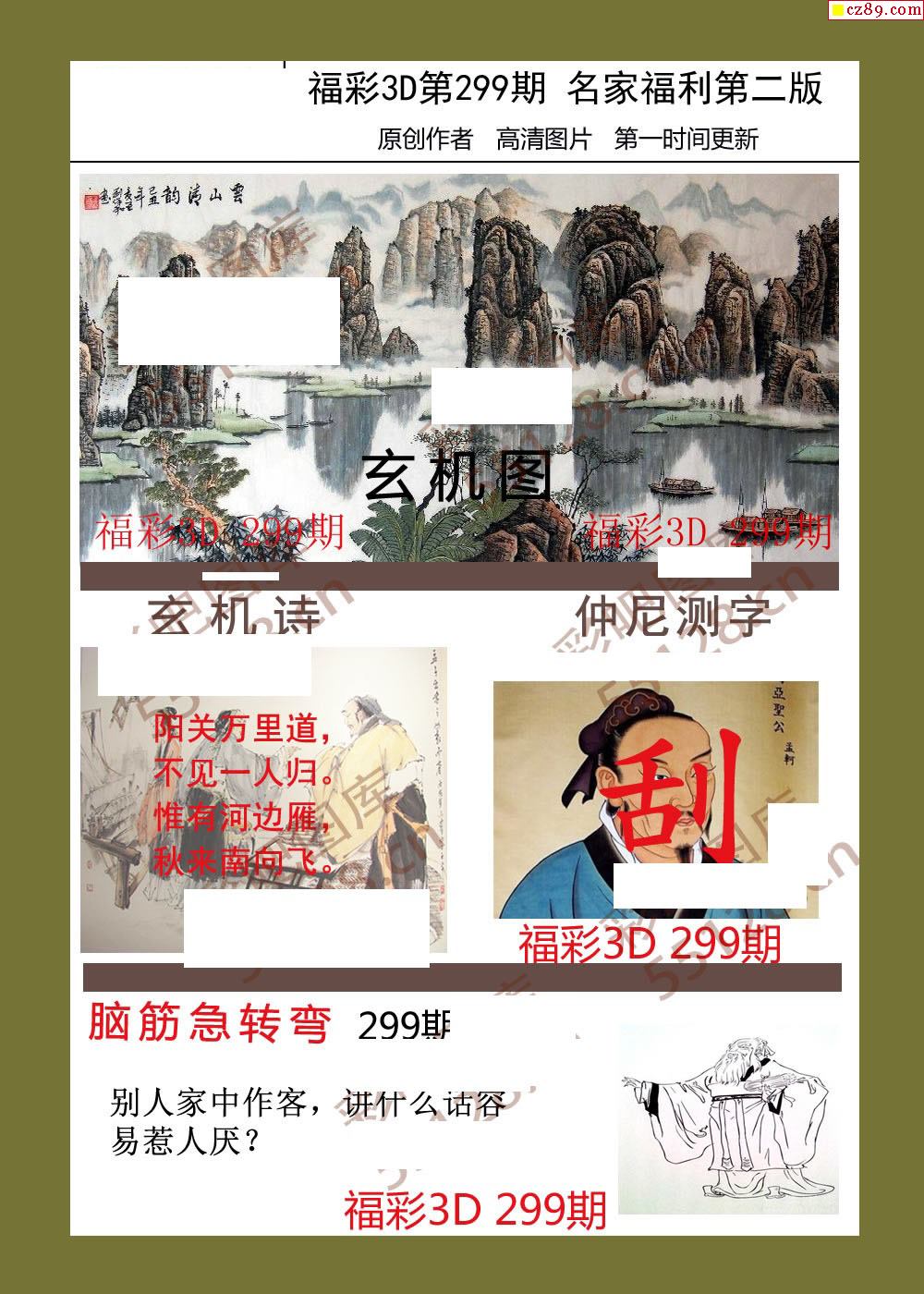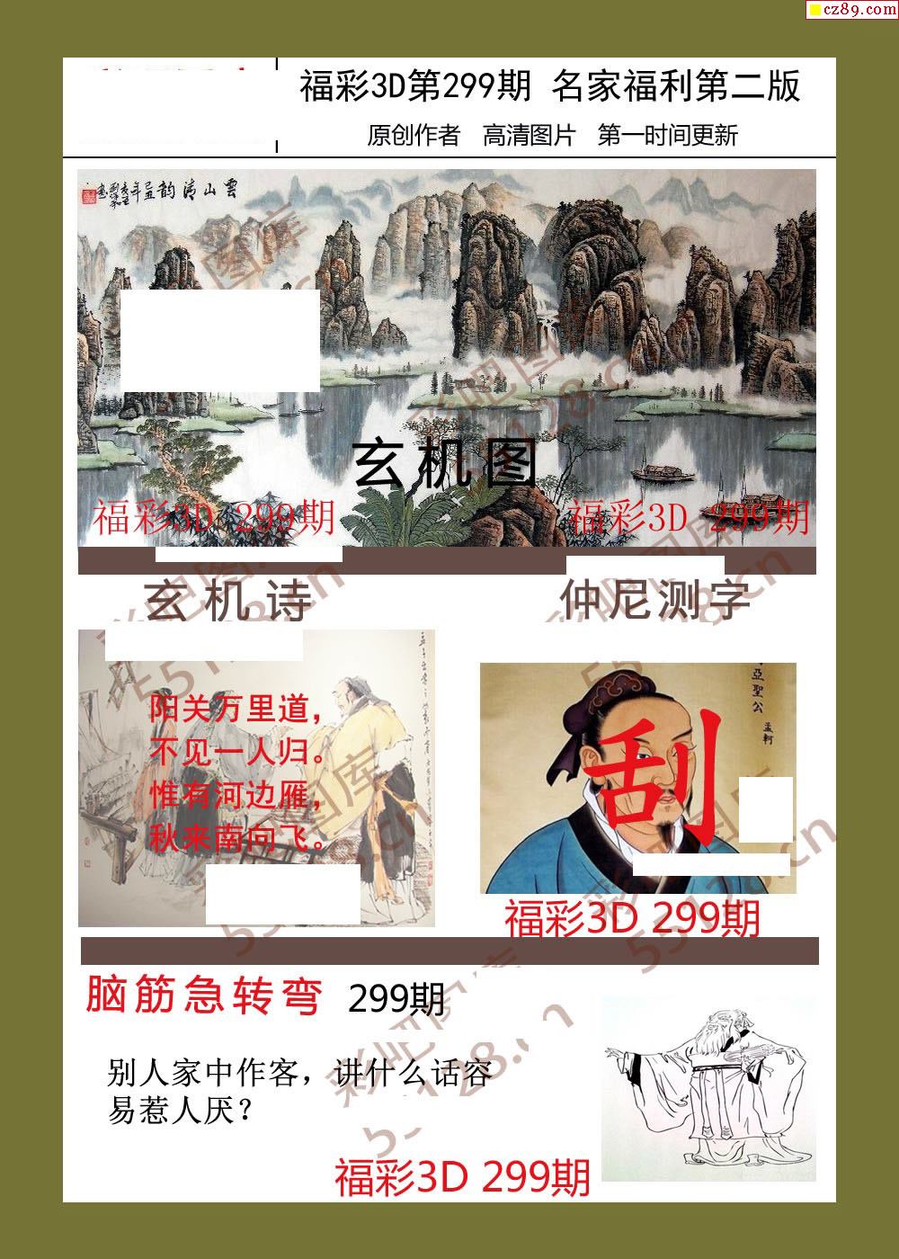 福彩名家福利彩票3d25年299期图谜