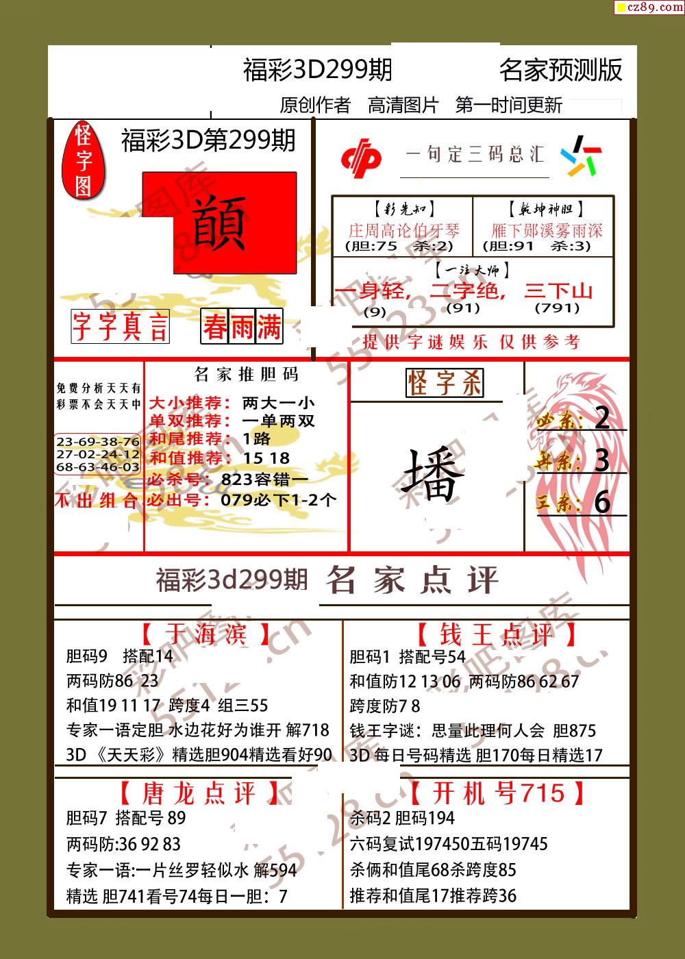 25年299期牛彩解福彩3d彩神通字画报