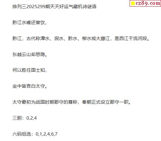 25年299期 天天好运气藏机诗谜