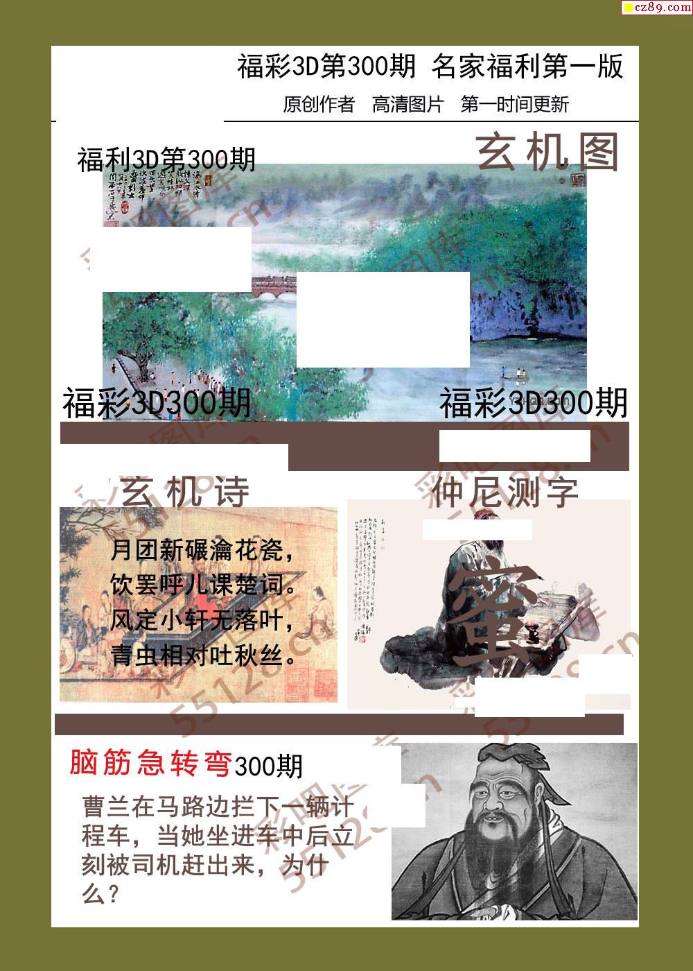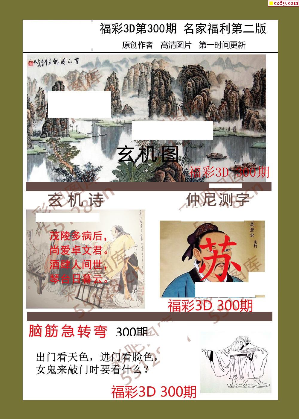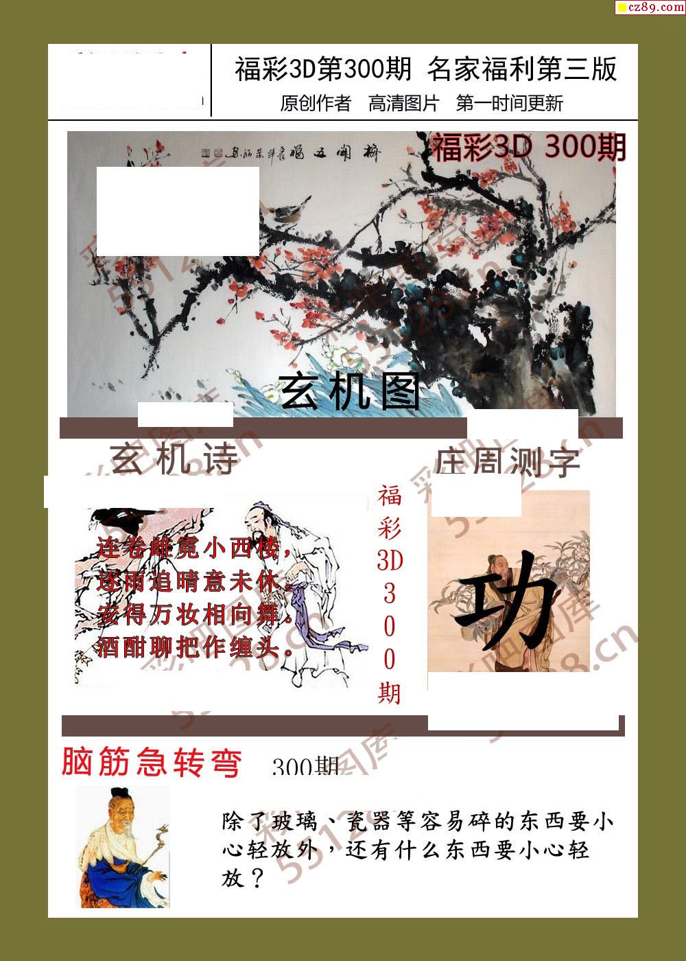 福彩名家福利彩票3d25年300期图谜