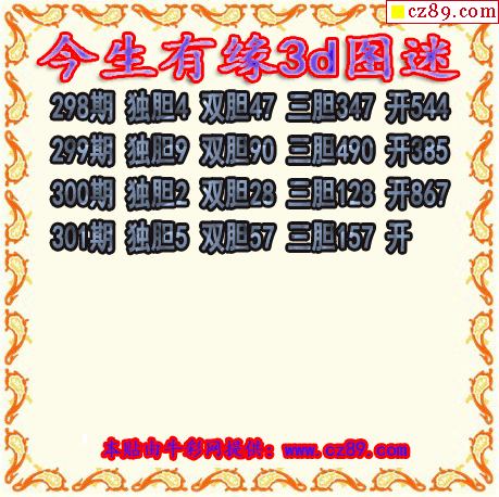 今生有缘三胆2025301期3d图谜(原创)